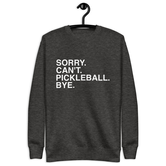 Sorry. Can't. Pickleball. Bye. Unisex Pickleball Sweatshirt